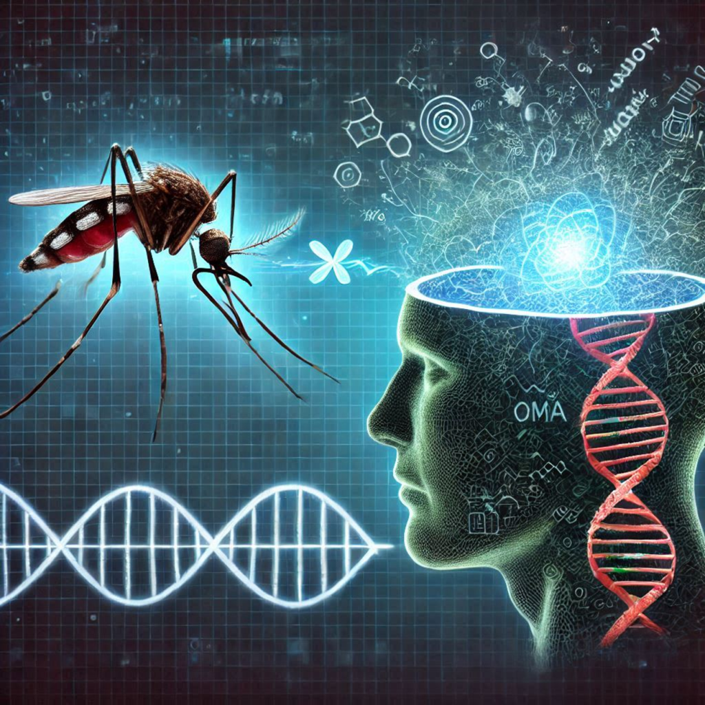 Image represents the question of how smart mosquito DNA is compared to human DNA